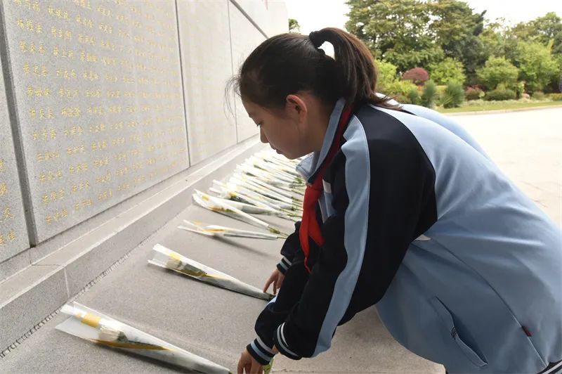 松柏吐新翠、春风寄哀思,蓝天白云映衬下的文林山革命烈士陵园庄严肃穆。巍峨耸立的纪念碑上,“革命烈士永垂不朽”八个大字苍劲有力、格外醒目。活动当天,全体人员整齐列队、庄严肃立,鞠躬默哀。在学生代表宣读倡议书和学生团体献唱《我们是共产主义接班人》后,活动启动仪式正式开始。随着《献花曲》奏响,全体人员手持鲜花拾阶缓慢上行,来到革命烈士纪念碑前深情凝视、缅怀先烈,绕革命烈士纪念碑一周,依次将鲜花摆在革命烈士纪念碑石阶上寄托哀思。