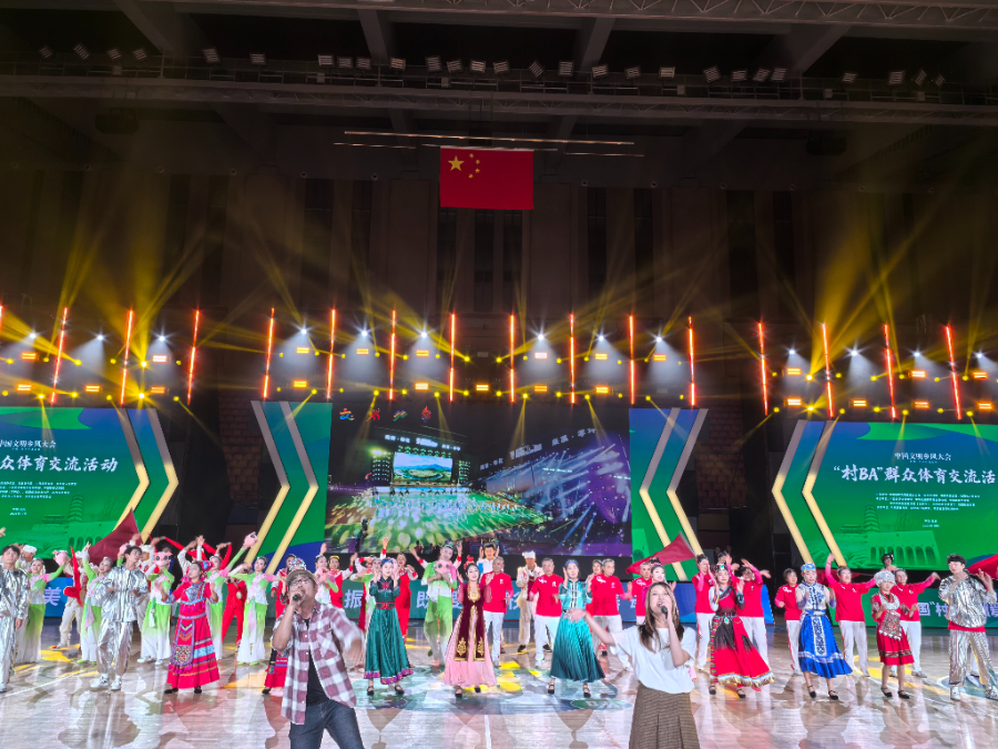 比赛间隙举办了“乡韵欢腾·全国和美乡村文艺展演”。一系列植根乡土、传递乡情的精彩节目轮番上演,空竹表演《秦风竹韵》灵动飘逸,民俗演出《桐子花开春风俏》韵味悠长,陕西非遗表演《安塞腰鼓》擂响了黄土地上的豪迈气魄,农民兄弟乐队激情唱响“村字号”赛事主题曲《乡村力量》,花式扣篮与全民欢歌等互动环节燃动全场,将现场气氛一次次推向高潮。赛场外,全国和美乡村篮球大赛(村BA)文化风采展,通过208张照片和65件实物,生动展示了“村BA”的发展历程与取得的丰硕成果。