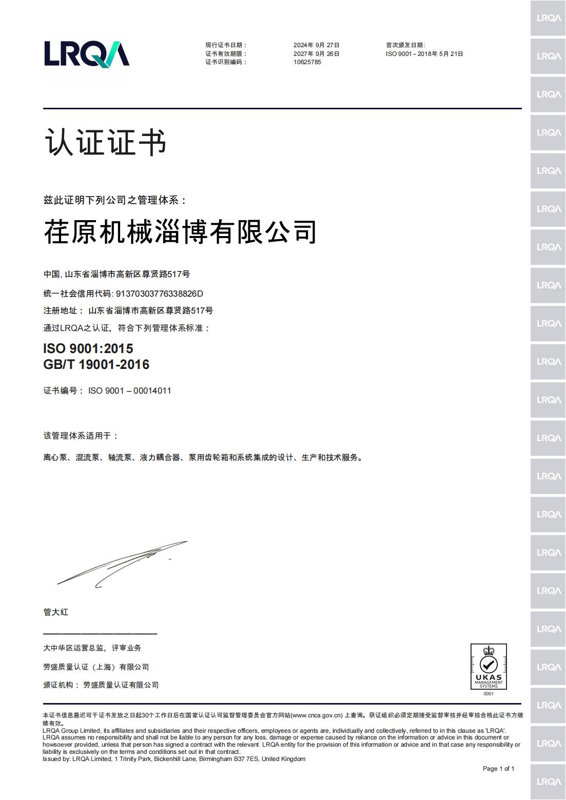 • 質(zhì)量管理體系認證證書