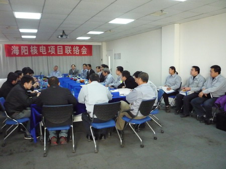 聯(lián)絡(luò)會主要是對我公司中標海陽核電項目一期工程2*1000MW項目中的開閉試泵和循環(huán)水泵的有關(guān)文件進行確認,以及進度計劃等后續(xù)開始的建造工作進行商議。