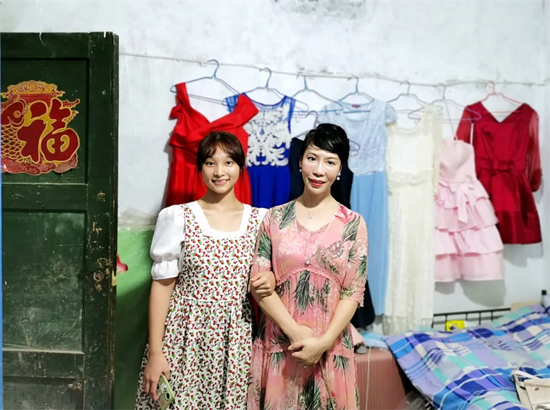周波(右)对受助孩子进行家访。受访者供图