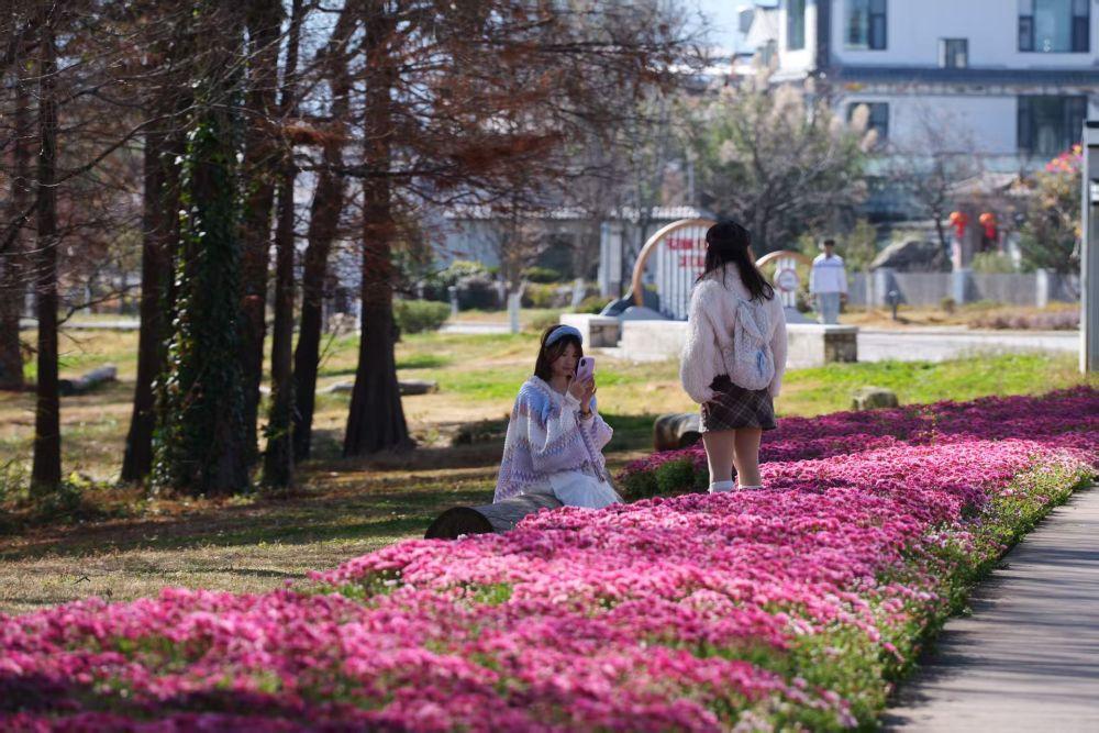 1月17日,游客在古生村生态廊道拍照留念。赵志伟 摄