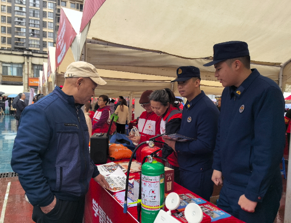 消防人员向群众普及消防有关知识。