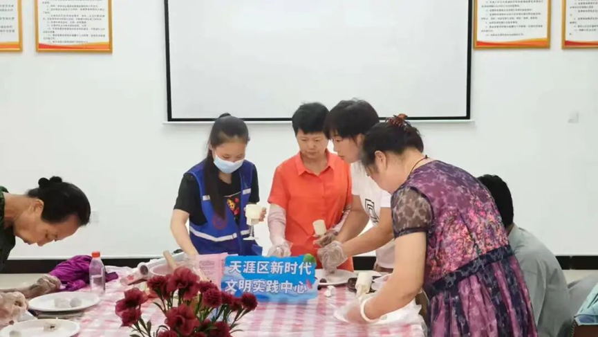 9月25日,天涯区实践中心联合群众街社区实践站开展非遗美食斑斓千层制作活动。