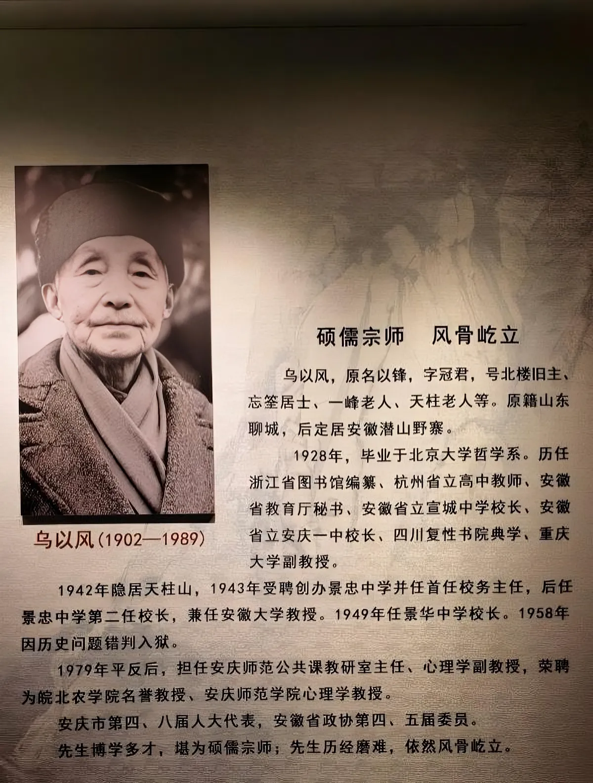 野寨中学博物馆展示的乌以风生平介绍。新华网记者李雪芹 摄