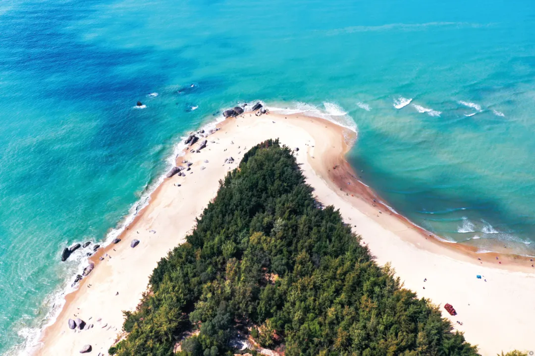 三亚崖州区梅联社区角头鼻海滩碧沙滩相映成趣